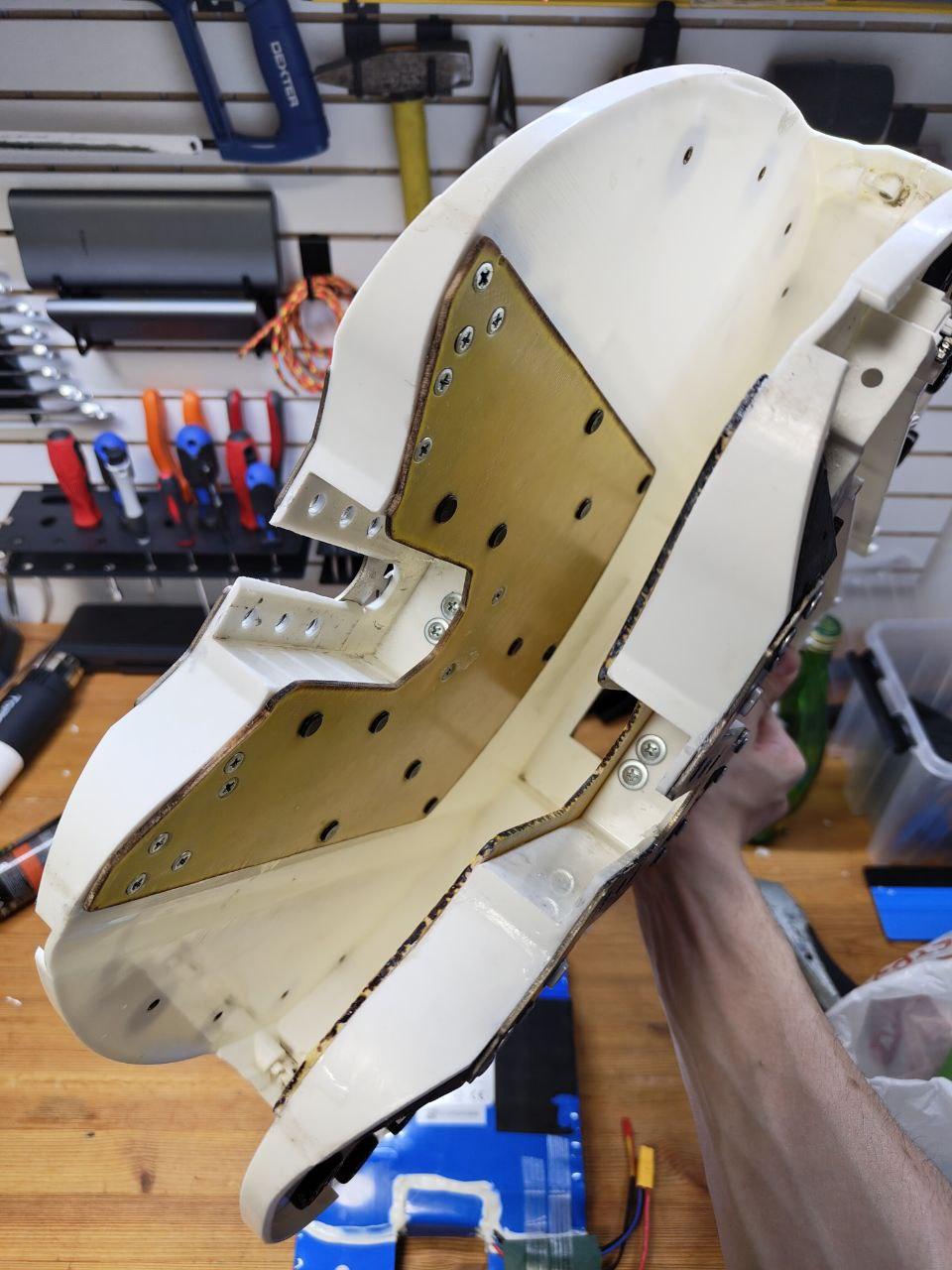 Bon bin voila @King Size à illustré mes dires. J'ai renforcé une coque blanche de V1 par flegme de tout transposer et je suis content de ma réparation mécanique et de mes soudures aux sucre pour ceux qui connaissent.