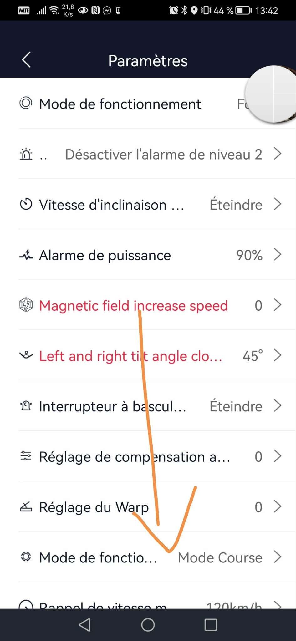 Ta Blitz pro est une 168v. Pour changer les modes sur l'appli Begode c'est juste là : Ouais bien sûr, c'est la vidéo compressée... En tout cas, ça prouve, contrairement à ce que tu as écris, que ça n'enlève PAS les "grésillements" sauf sur certains modèles comme les 134v. Il faut être préci sur un forum autrement ça ne sert à rien d'intervenir, c'est mieux, non ?
