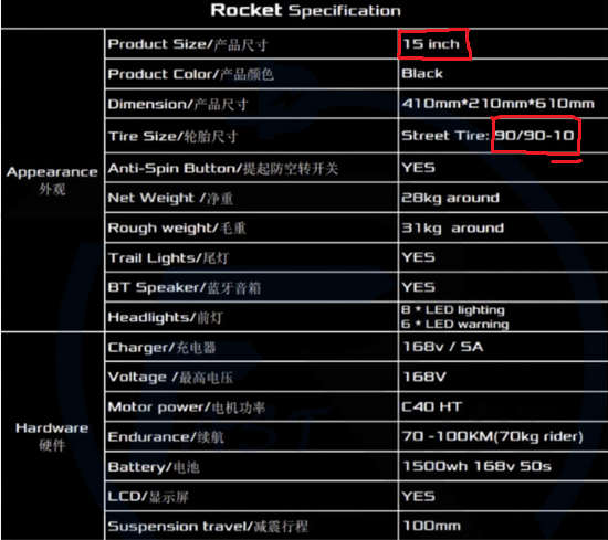 EB Rocket [jante 10’, 168V, 1500Wh, 32Kg]