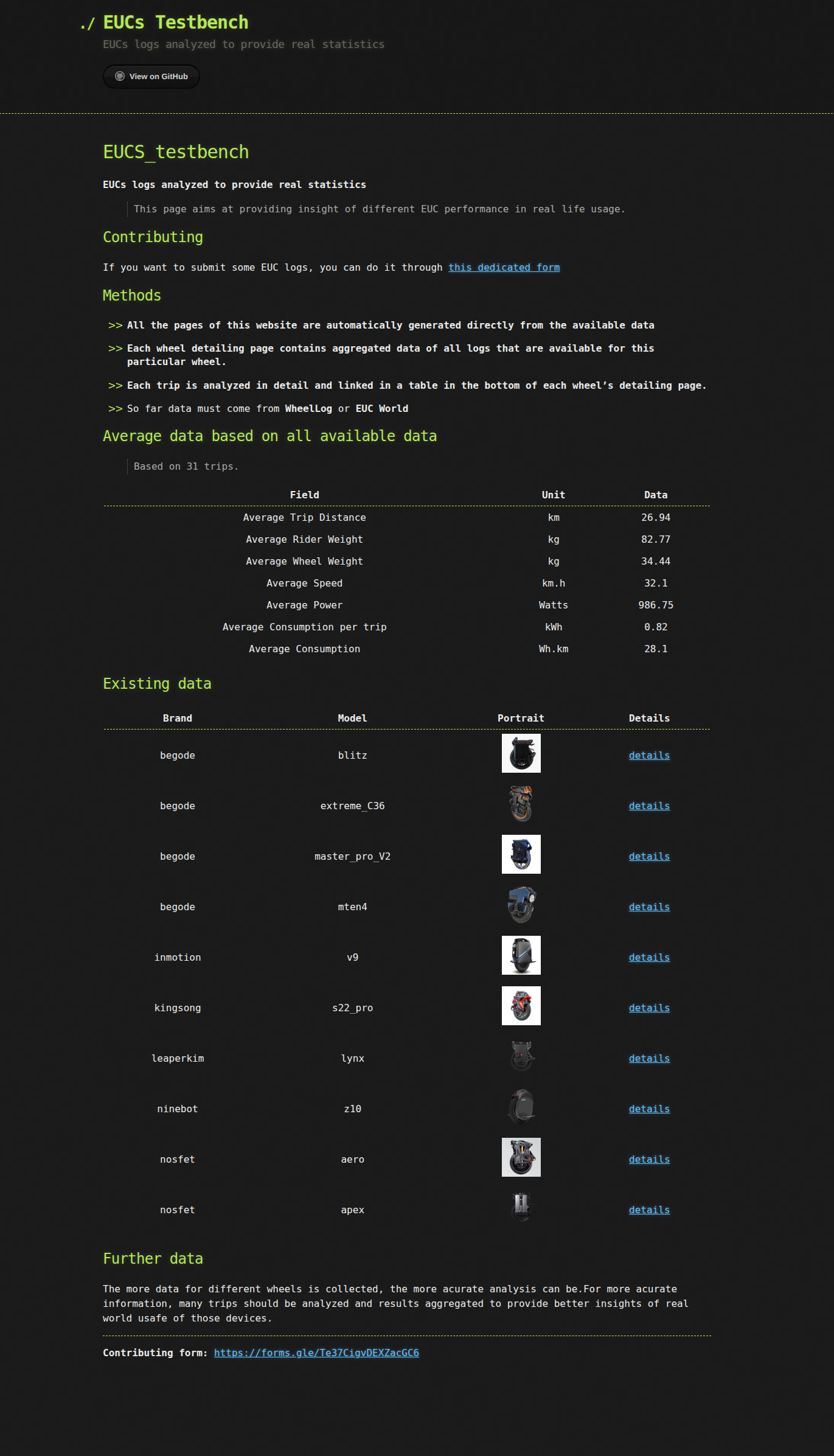 EUCs_testbench : Enfin de vraies statistiques sur l'usage de nos roues