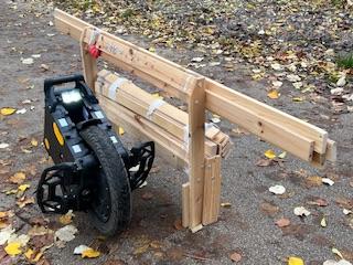Un cadre de lit et ses lattes (16Kg) sur 12km, j’ai les bras plus long et la colonne vertébrale plus courte qu’en partant..