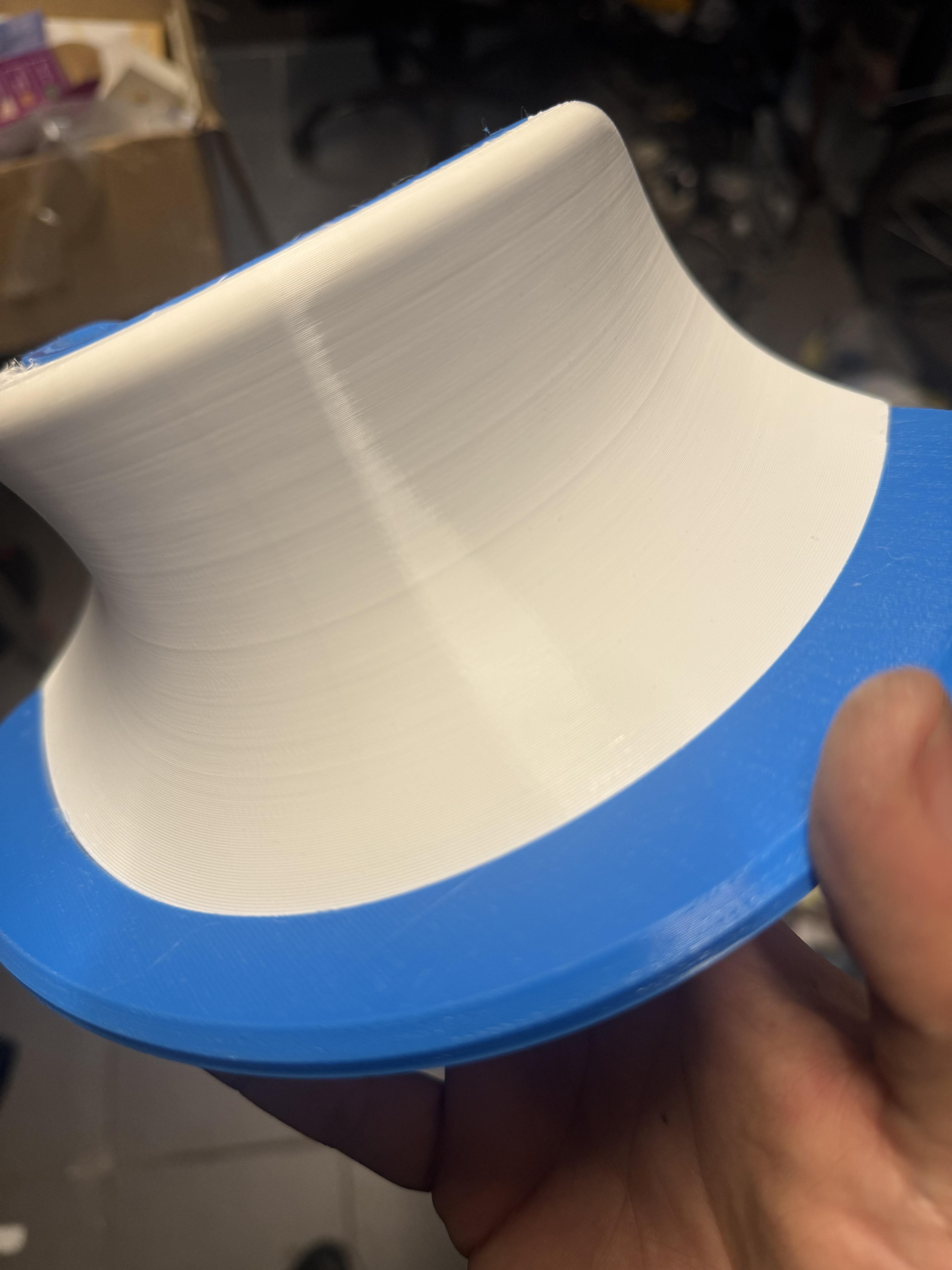 Mon parcours avant une mini review de mon nouveau joujou: Suite de machines. Ça faisait donc longtemps que c’était ma Wanhao D6 qui servait, et sa taille d’impression modeste, son bruit relatif et d’autres raisons m’ont inspiré l’achat d’une Bambulab P2S sortie il y a peut. La P2S est la nouvelle version de la P1S (la gamme grand public avancée), avec des éléments des X1S (leur premier hit, plus premium) et de la série H2, plus prosumer. C’est une machine fermée de 256mm x3 qui supporte une grande partie des filaments. C’est toujours la même techno « pistolet à colle » que depuis 15 ans+; mais il y a eut beaucoup d’évolution sur le confort d’utilisation. Si mon ancienne pouvais sortir des résultats similaires celle ci est beaucoup plus automatique et facile à utiliser. Elle est aussi beaucoup plus rapide et pas mal plus silencieuse. La gestion à distance est pratique; le plateau qui s’enlève pour décoller les pièces, la mesure automatique du lit, toutes ces choses ne sont pas essentielles mais bien agréables. Si elle n’est pas parfaite, je la trouve impressionnante pour son prix de 520€. Il y a eut une levée de bouclier contre Bambu lab parce qu’ils poussaient un peut trop le cloud; mais tant q’ils proposent un mode réseau local ça me conviens. L’entreprise est fondée par un ancien ingénieur de chez Dji, et ont eut un investissement et une approche de produit industriel, dans un domaine qui était encore un peut artisanal. Le concurrent direct de cette P2S est la Centauri Carbon de chez Elegoo au prix imbattable de 290€. Premier test: les éléments imbriqués sont mobiles l’un par rapport à l’autre. Couches visibles parce que vieux filament et lumière qui ne pardonne pas.