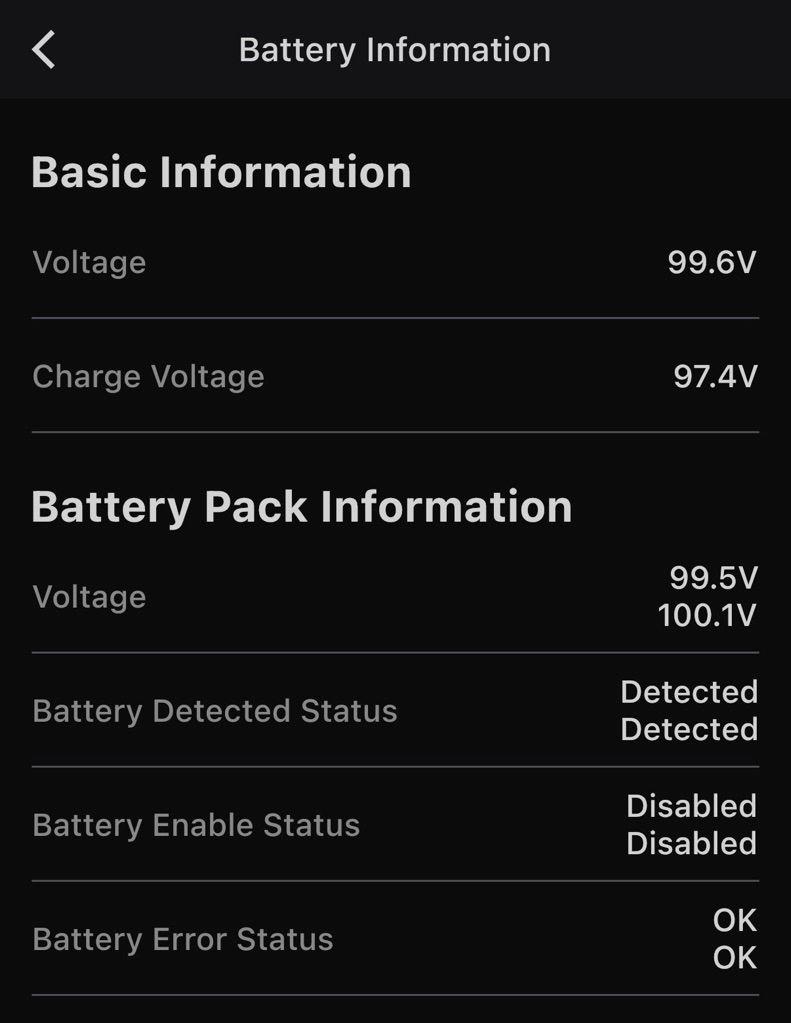 Bonjour à tous ! On me propose une roue, dont voici la capture d'état des batteries, chargée à 100%. Plus que l'écart par rapport aux 100.8V nominaux (que je juge OK pour une roue qui a 4500 bornes dans la gueule), je m'inquiète de ce que je vois comme une nette disparité de tension entre les deux packs, sans doute imputable à un mauvais rééquilibrage. Questions : 1°) Ai-je raison de penser que ça pue du cul, ou sommes-nous dans des bornes acceptables ? 2°) Qu'est-ce qui serait un bon prix pour une V12 HT de la sorte ? 3°) Ai-je l'opportunité de rééquilibrer ces packs de batterie, ou quand l'écart s'est créé, c'est baisé définitivement sauf à les changer (ce que je ne ferai pas) ?
