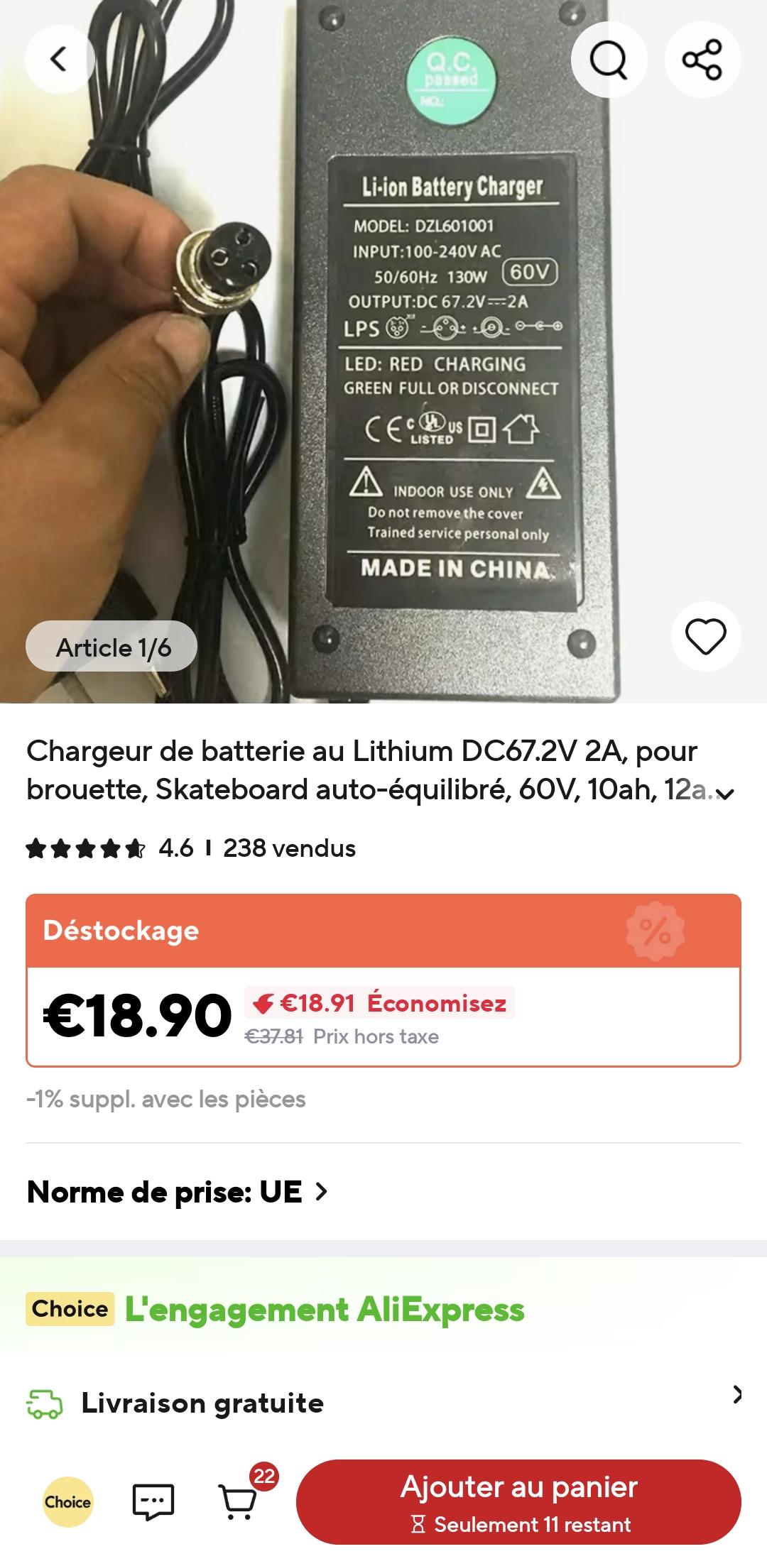 2. Difficile à décrire comme bruit il faut approcher l'oreille pour l'entendre. Voyant sur la photo ci jointe 60V , jai commandé un chargeur sur Aliexpress , du coup j'ai peut être pas choisi le bon voltage?