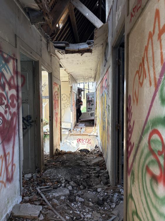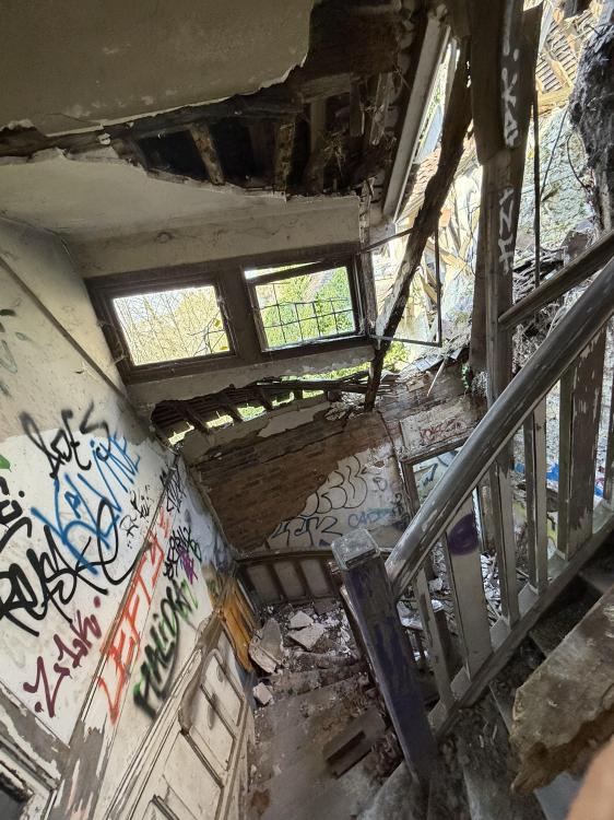 En effet, sortie en petit comité vers une bâtisse étrange et bien cachée sous une nature qui semble vouloir reprendre ses droits. A la vue des "décorations" artistiques, politiques, expressives, multicolores et contemporaines, nous ne sommes pas les premiers à découvrir le travail du temps et à se poser pour imaginer la vie des anciens s'affairant dans toutes ces pièces. Merci @misc de m'avoir ouvert l'esprit à ces rêveries. Au final les 'pas du matin' que nous sommes ont débuté à 11H de Stalingrad, 3H de visite, pour terminer autour de 21H à la maison, sans vraiment traîner, ni se presser. Un bon 130km pour moi, une ptite demi-heure de charge au carrefour du coin avec l'essai, validé, de ma T2 modifiée à 4300W (voir le sujet concerné).