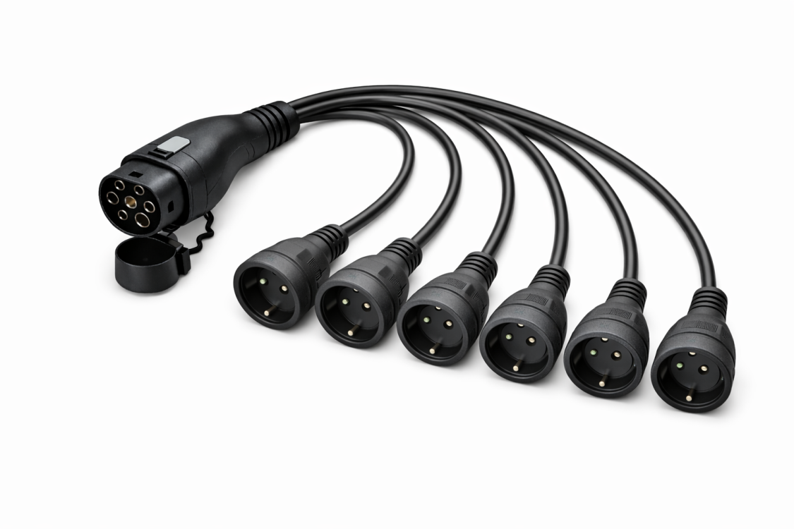 La 7.4 kw serait donc aux petits oignons pour 4 chargeurs et la 11 kw pour 6 chargeurs. En se serrant un peu, on pourrait même y glisser une roue supplémentaire dans chacune des configurations. Pour être optimisées, ces prises T2 devraient être équipées d’un fouet (en 2.5 mm) de 2 ou 3 doubles prises standards selon la version retenue, ou des simples, auxquelles on rajouterait un T classique.