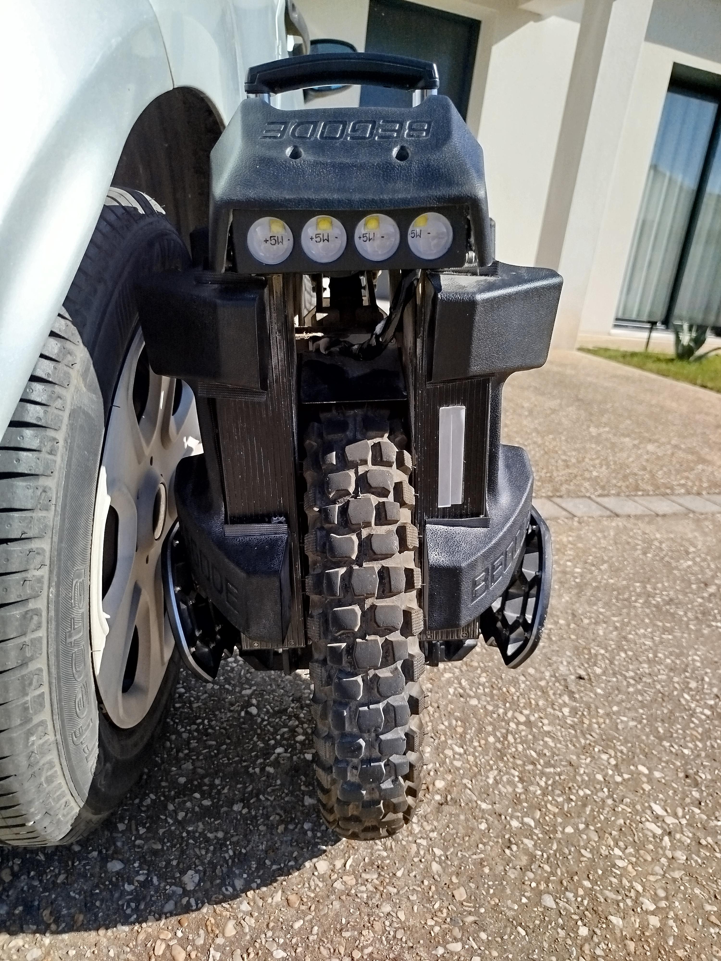 Depuis les nombreuses CPRO arrivées sur le forum, Il paraît qu'on me réclame de décrire les options ajoutées sur la mienne. Mon idée est d'utiliser l'énergie de la batterie de la roue et ainsi ne plus se soucier de charger des batteries annexes, voici : J'ai ajouté un phare cyclope pro 24V, plus dispo, mais d'autres arrivent : https://mrmayart.com/products/cyclope-pro Il est prévu pour les Leaperkim, j'ai du taillé dans la masse pour lui trouver une petite place, il tient par velcro sur 3 côtés J'ai ajouté un feu AR avec FEU STOP, trouvé ici : https://www.amazon.fr/dp/B0DBKZ9XVS?ref=fed_asin_title Il a la particularité de s'intégrer parfaitement. J'ai ajouté 2 prises USB-A et C avec ceci : https://fr.aliexpress.com/item/1005007614330107.html?spm=a2g0o.order_list.order_list_main.5.114f5e5bFPRGZ2&gatewayAdapt=glo2fra Et aussi une caméra de moto. Sans batterie elle démarre toute seule et conserve plusieurs heures de film. Mon utilisation est uniquement en cas d'accident. (Merci @misc ) Pour alimenter le tout j'ai installé un convertisseur DC-DC 150V-->24V/2A, soit 48W, branché sur le circuit batterie avec un fusible de 15A et une CTN qui évite les arcs dus aux condensateurs, (Merci @OzMek ) ici. la J'ai installé la possibilité de charger sans passer par la carte de charge, qui limite à 12,5A, pour 2 raisons, en cas de besoin de charge rapide exceptionnelle, et en cas de panne. A cela j'ajoute quelques fils de récup correctement dimensionnés et 2 interrupteurs étanches que j'ai placés en dessous à l'arrière, juste 2 petits trous faciles à boucher au démontage. Conso: cam+feu de jour+feu ar : 8W le phare ajoute 28W. Il faut juste ne pas charger un tel avec phare allumé. Cette Commander pro se prête bien à l'installation de tout ça avec plein de place sous le couvercle principal. J'ai retiré la carte son BT et les 2 HP, inutiles. Ci-dessous les schémas avant et après, et qq photos :