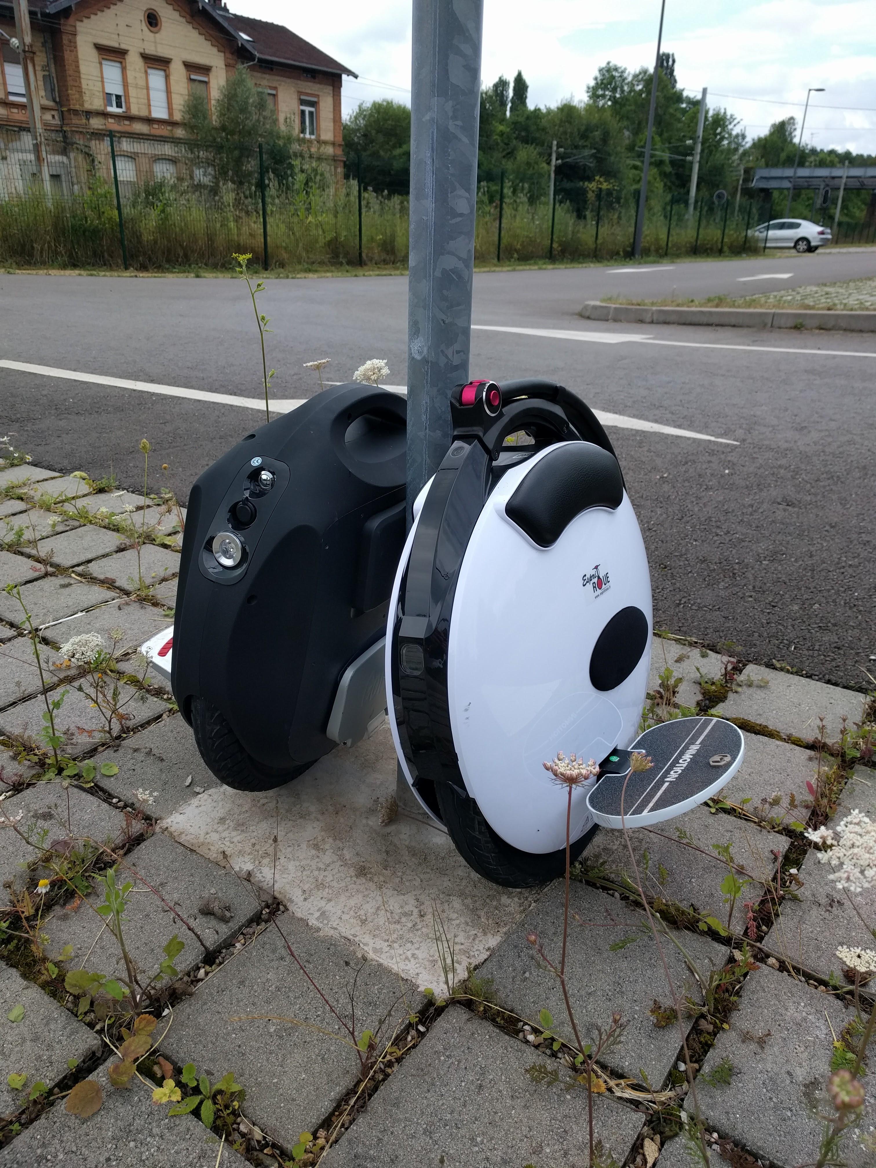 J’ai eu la chance de faire partie des 3 beta testeurs sélectionnés par Gotway France dans les personnes ayant pré-commandé la Gotway Msuper 3, je permet donc de créer un Topic pour ces tests. J’ai récupéré directement l’objet du désir au magasin E- roue à Paris, c’est une version 680 Wh. Je précise que je n’ai aucune action chez Gotway, je vous parle donc librement après avoir roulé sur cette roue quotidiennement pendant 2 semaines. Pour connaitre mon profil de Wheeler : Je suis propriétaire d’une Ninebot One E+ depuis un an, je l’utilise au quotidien pour aller au boulot (10km/jour) en trajet mixte avec le RER, et cela quelques soit les conditions météo. En plus de ces trajets quotidiens, je me balade fréquemment sur Versailles et dans ma petite ville de campagne. Vous l’aurez compris je suis plus un rouleur qu’un adepte du street ;-) même si cette discipline m’impressionne ! Je change de roue car malheureusement l’autonomie / vitesse de ma Ninebot n’est pas suffisante pour mon usage : en effet il n’est pas rare que suite à des problèmes de train, je sois obligé de finir mon trajet en roue sur une quinzaine de kilomètres de monotones route / pistes cyclables en bordure de champs ou en plus de l’ennuie, je me fais dépasser par des vélos qui se demande à quoi peut bien servir cet engin qui se traine sur leur chemin (je ne vous parle même pas lorsque je suis s en fin de batterie à 12 km/h). Vous l’aurez compris même si je trouve formidable ma Ninebot et son mode 0, elle trouve ses limites lorsque je sors des villes. LA MSUPER 3 J’ai donc pu découvrir ma roue pour la première fois le jeudi 15 septembre, et ma première impression a été : Mais c’est quoi ce pneu de fou !?! En effet la MSUPER annonce tout de suite la couleur avec son très large pneu de 18 pouces qui semble prêt à écraser tous les obstacles. La coque noire brillante fait son petit effet même si je l’aurais préféré noir mat et que je trouve discutable les parties rouges au niveau des boutons et du phare. Les grandes pédales semblent très confortables et le revêtement promet une bonne adhérence. Le feu de stop est plutôt beau et bien intégré. Les mousses latérales sont très moelleuses et l’indispensable trolley est juste à ma taille (1 m 74) et se déploie facilement, sa préemption n’est pas ergonomique et est plus agréable main à l’envers, aller comprendre … Il y a une arrête de coque mal ébavurées au niveau de l’emplacement du trolley mais rien d’alarmant. Niveau poids, bien que 5,3 kg plus lourde que mon ancienne roue, je trouve qu’elle se porte sans problème au quotidien. Attention je ne parle pas de monter au 7 ème sans ascenseur, mais plutôt d’accéder aux quais de la gare ou de monter dans le train. Je pense que cette sensation vient de la poignée horizontale et fixe qui tient vraiment bien dans la main. PREMIER JOUR, PREMIÈRES SENSATIONS : J’ai bien annoté tout ce que j’ai ressenti le premier jour car je trouvais important les sensations premières sur une journée, avant de m’habituer à la roue : A peine parti, je sens que le moteur est très très puissant, l’accélération est linéaire et semble vraiment sans limite, c’est presque effrayant OO, Je m’arrête par sécurité et vérifie mes réglages d’alertes avec l’application Gotway 2.0 (IOS pour ma part) à savoir tilt back à 36 Km/h et deux premiers bip désactivés (redémarrer la roue pour applications des paramètres). A présent rassuré, je lance la bête avec confiance sur une grande ligne droite déserte en bordure de champs (équipé de mon casque intégral et de mes protections de rollers). L’accélération de la Msuper 3 est démente, au bout d’un long moment penché en avant, je fini par ressentir le tilt back et je passe en vitesse de croisière sur de longs kilomètres (on m’a demandé de tester ou pas !? ^^). 11 km parcourus à presque 28,2 km/h de moyenne et une vitesse max de 33,2 km/h (Runtastic) le tout en étant loin des limites de la roue, pas mal pour un premier tour! La capacité de cette roue à tenir une vitesse élevée avec une grande stabilité est exemplaire, un vrai rail comme disent les motards ;-). De plus sur les routes que l’on pratique au quotidien, la Msuper 3 grâce à la taille de sa roue, donne l’impression qu’un rouleau compresseur est venu aplatir la route. Mais où sont passés tous les creux et bosses que j’avais l’habitude de subir, les zones ou je savais devoir ralentir ? Et bien disparues comme par enchantement un vrai régal pour les personnes sensible du dos comme moi ! Encore sous l’euphorie ces performances, je me dis que c’est bien beau la puissance et la vitesse mais la bête est-elle maniable ?? Pour tester cela je me suis baladé un peu à vitesse modérée au centre-ville, slalomant le plus possible entre le mobilier urbain et montant/descendant tous les trottoirs sur mon parcours. Apres cet exercice, fort de mon expérience en 16 pouces et ayant déjà testé une Msuper 2 et la KS-18A : Je peux dire que oui la Msuper 3 est très maniable, elle est presque autant qu’une 16 pouces avec une prise en main immédiate, c’est impressionnant pour une roue de18 pouces ! Le bilan cette première journée : Déjà des douleurs musculaires aux cuisses, c’est une roue qui nécessite des appuis puissants. Également des douleurs dues aux contacts avec les coussins latéraux (changement de roue oblige), les pédales sont vraiment géniales. Je n’ai pas vérifié l’autonomie de la batterie sur cette journée ce sera fait sur la durée du test. CONSTATATIONS FAITES AU COURS DE CES DEUX SEMAINES DE TESTS: Pendant cette période de test, j’ai fait de nombreux trajets sur tous types de terrains (sauf la boue et le sable) et je n’ai jamais été pris en traitre par le comportement de cette roue. Je lui donne même une mention spéciale: j’ai pu passer sans encombre 